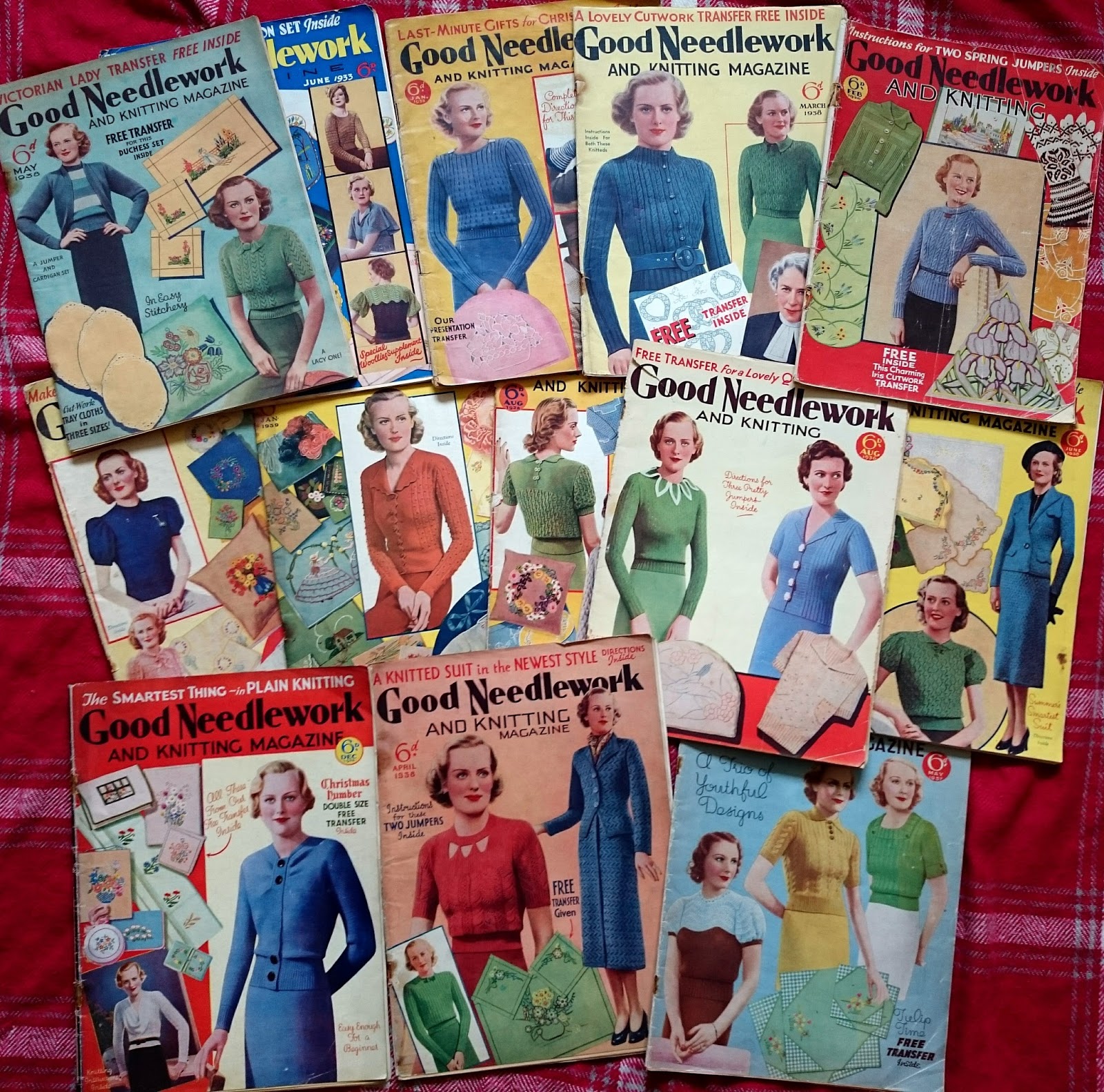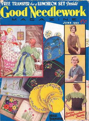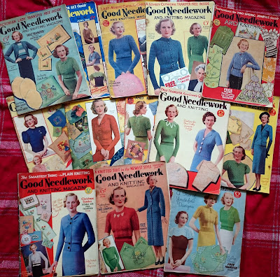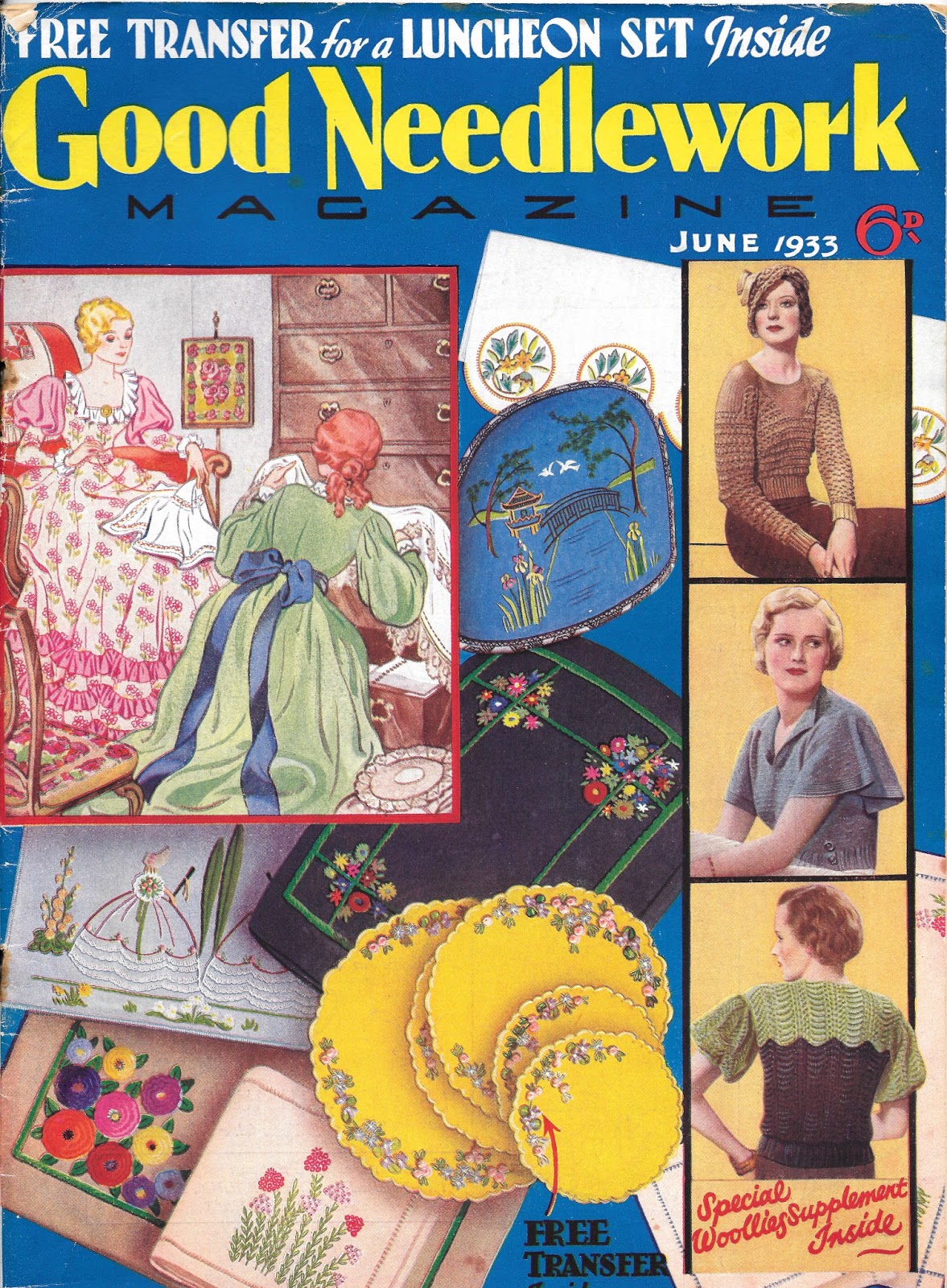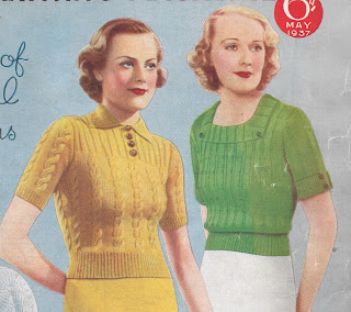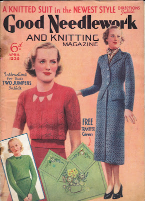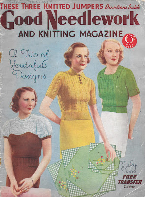I will begin with Good Needlework magazine, as it is one of the best magazines from the glory years of the 1930s for knitwear design. Not only were the patterns shown in full colour, (often super bright colours), but the patterns often gave alternative colour schemes for the designs - right down to the shade of stockings!