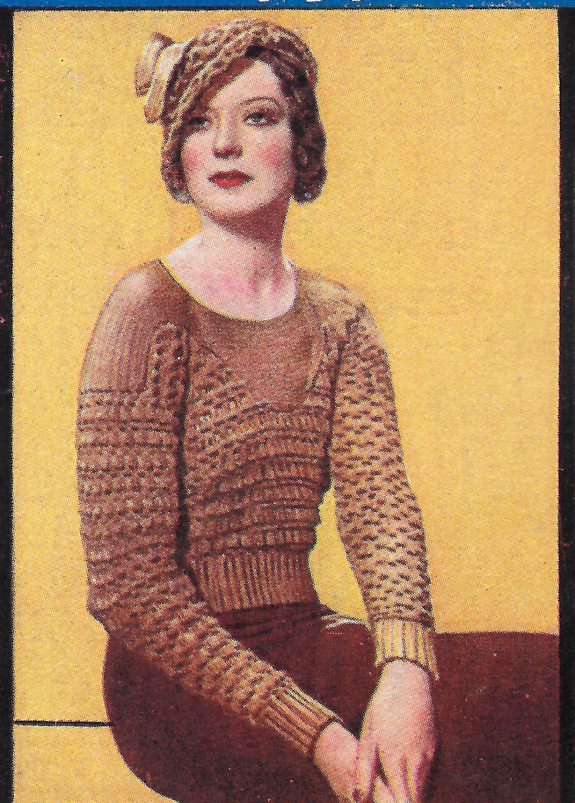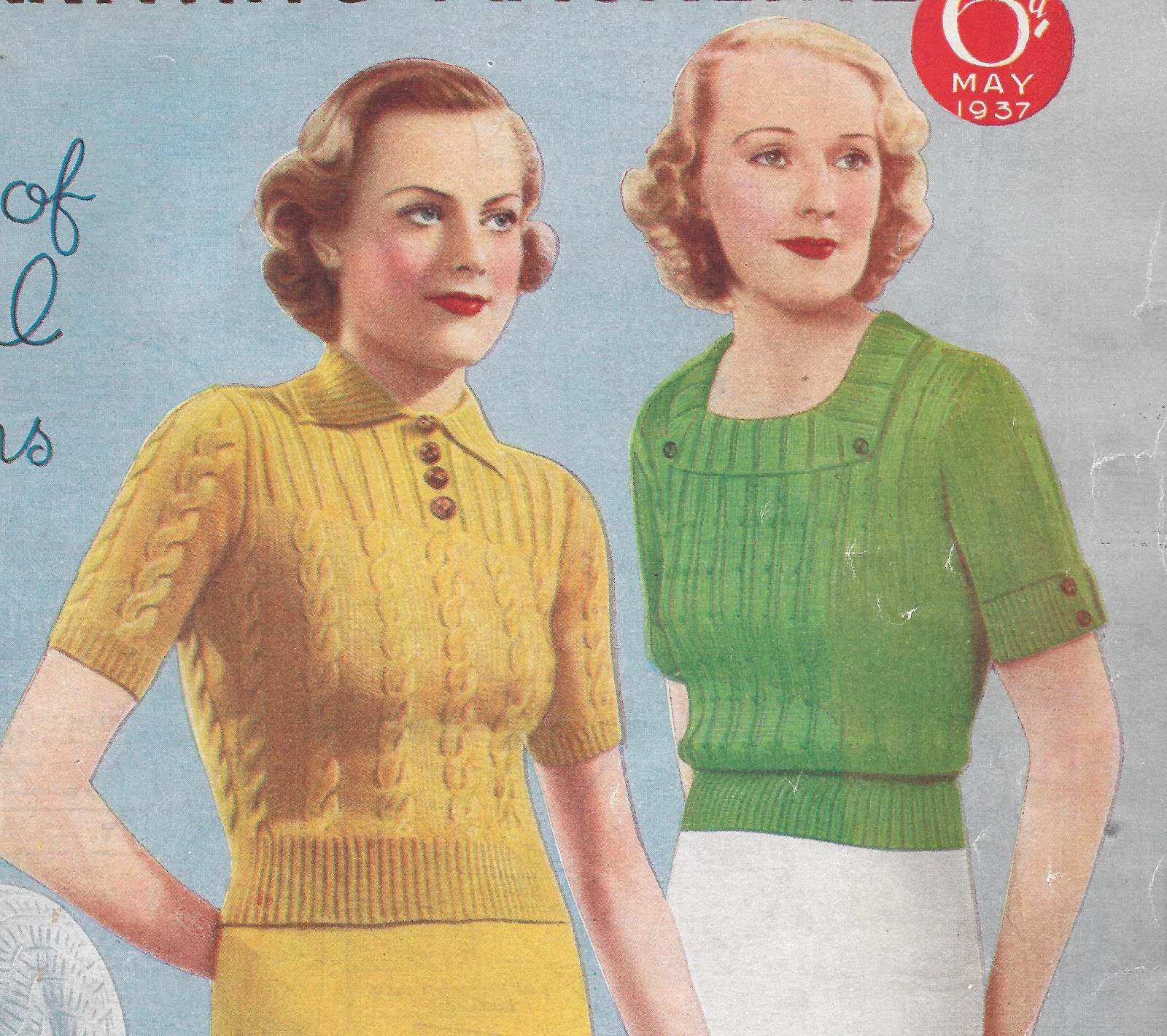 This jumper is from the same issue, but too good to miss out. In the famous feather and fan pattern, it has similarities with a jumper featured in A Stitch in Time Vol 1, which you can see on the cover of Good Needlework 1937, below. This one is in 4 ply, and has drop sleeves, as the back and front are knitted straight without armhole shaping.